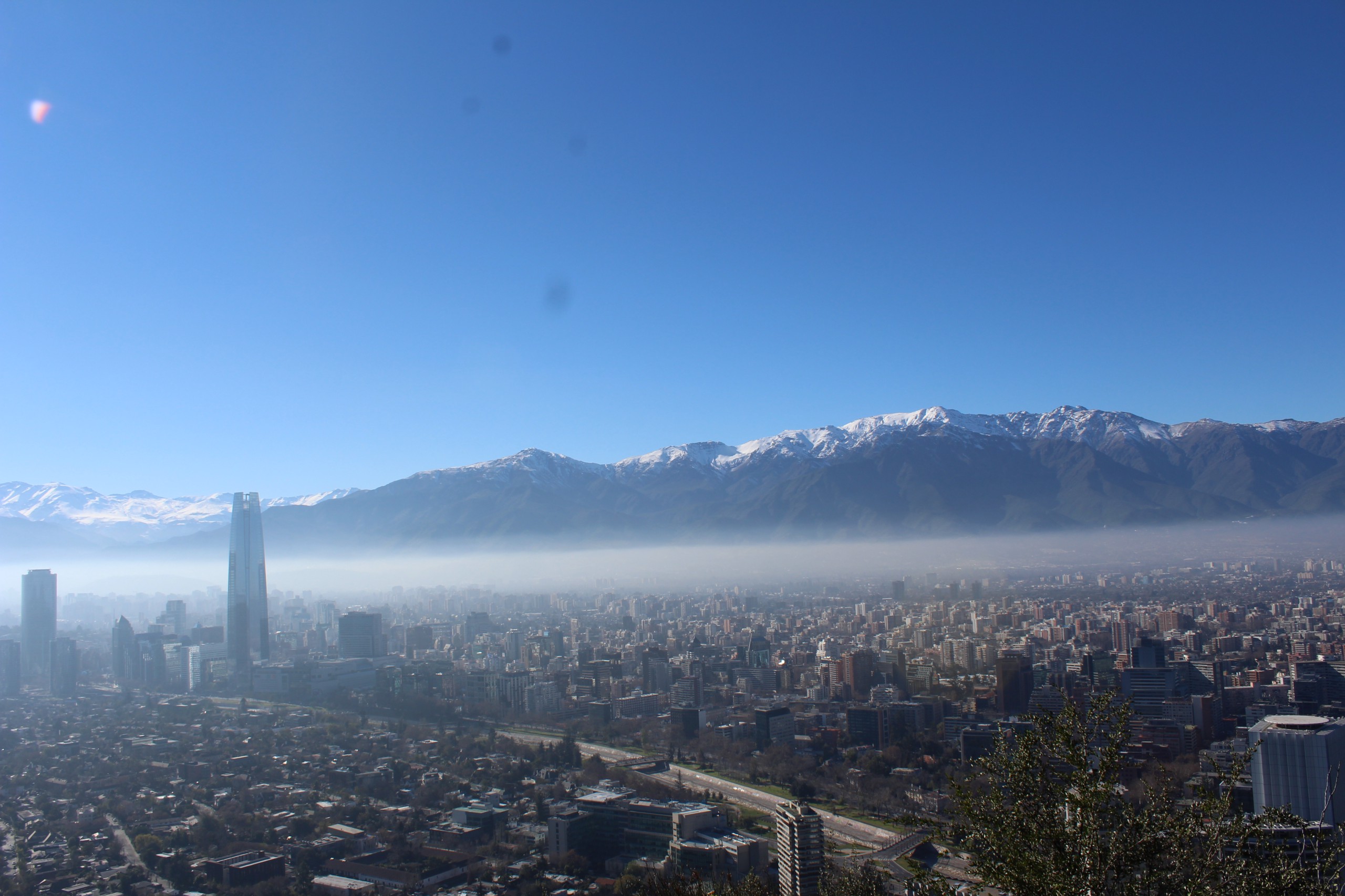Esa tarde un amigo me llevó al tejado de una casa, donde sólo se ve cielo sobre la cabeza, y los Andes le hacen cosquillas al azul, y el sol poniente besa en la frente a los edificios. Debe ser uno de los mejores sitios del mundo. Un oasis, un domingo.