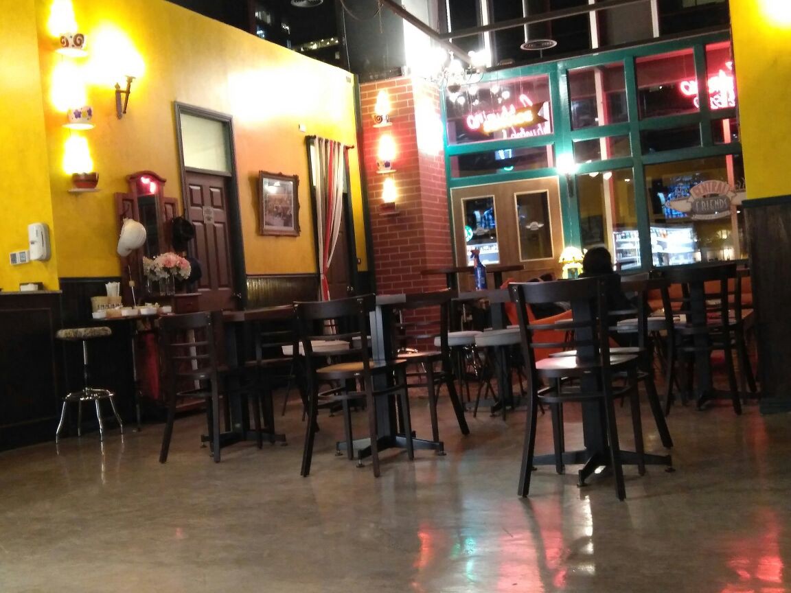 Estuve también en un bar que hay en Sanhattan -Sanhattan es el centro financiero de Santiago, donde no habitan personas, sino oficinistas tristes y jóvenes explotados viviendo el celibato laboral a la espera de una vida más digna- que es una copia del bar de Friends, la serie. Aunque es bien caro, tiene su gracia, y conozco a más de uno (Myriam, qué me dius?) que lo disfrutaría. El café es bueno, cosa difícil en Santiago, y las tartas ricas. No se llama Central Perk por una cuestión de derechos intelectuales, supongo, pero es igual. Hay dos televisiones en las que todo el rato echan capítulos de la serie, y tienen sofás y una guitarra, y una jefa de camareros que debe tener agujetas en los mofletes de tanto sonreír. Lo bueno que tiene es que puedes pasar la tarde en un abrir y cerrar de ojos. Cogí la guitarra y cuando me di cuenta ya era hora de cenar.